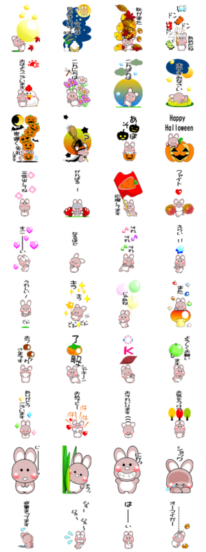 おはぎ色したウサギ おはうさの使いやすくて楽しい細長くてBIGな秋用スタンプです。