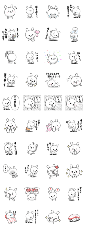 ひねくれうさぎシリーズ第22弾!シンプルで使いやすいスタンダードな表現から相変わらずひねくれた表現まで幅広く使えるスタンプです。なんかまるいのもいる…