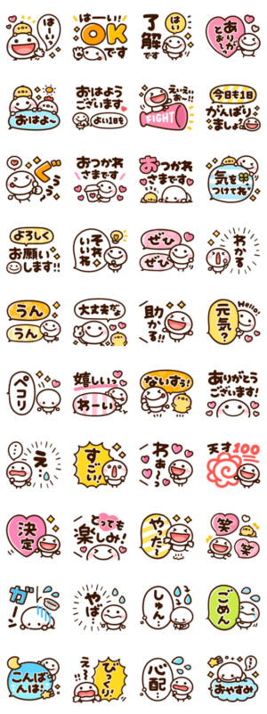 見やすいデカ太文字!!毎日使える言葉をあつめた棒人間のスタンプです♡リアクション豊富♪敬語も入ってます♪ぴよたぬき♡ より発売