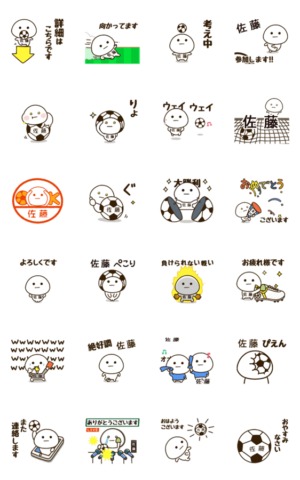 体やボール、声出しに名前入りで気持ちを繋ぐ「佐藤,さとう,さどう」さん専用サッカースタンプ!エンジョイフットボール☆byだいふくまる。