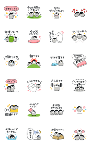 ペンギンの赤ちゃんと時々でてくるシロクマの、やさしく気づかいのできる敬語の言葉がいっぱいのアニメーションスタンプです♪