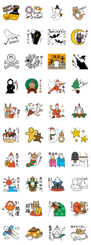 いとうです。ハロウィン・クリスマス・年末年始に使える秋冬のイベント用スタンプです。静かに気持ちを伝えたい時に…楽しくご利用下さい。