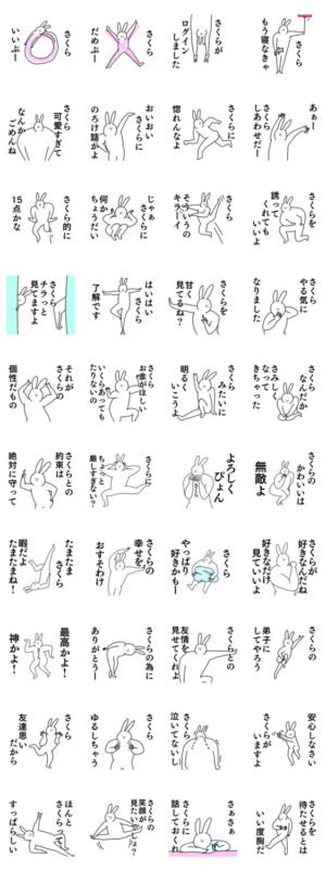 さくらちゃんが使えるスタンプです。さくらさんへのプレゼントにもどうぞ。サクラ、佐倉、桜、咲良、櫻、作倉、佐久良、朔良、咲羅など。シュールで面白いスタンプです。
