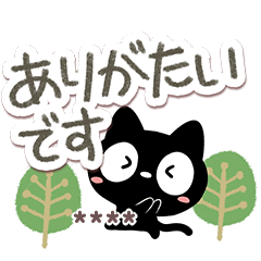 デフォルメされたくろねこの文字入りスタンプです。会話になじむ使いやすいスタンプです。