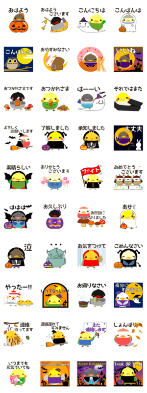 秋バージョン。文鳥、おかめインコ、ハト、フクロウ、すずめ、セキセイインコ、ボタンインコなど鳥、小鳥好きな人に。ハロウィン、台風、月見、敬老の日、など、敬語プラス