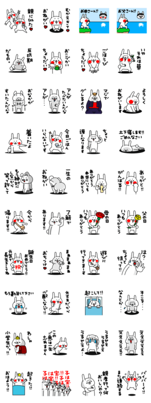 全力でうざい全力でおちょくるあざとかわいいうさぎの子ども心が爆発!お母さんやお父さんやおじさんにおばさんにじじにばば。あらゆる年上に娘や息子気分で送れるスタンプ