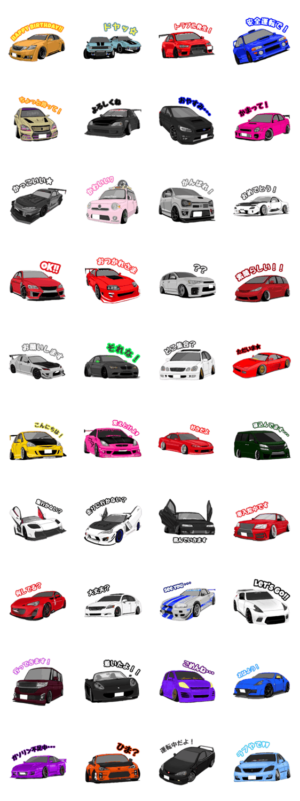カッコイイ車を集めたスタンプです。車好きは是非買ってください。りりまる より発売