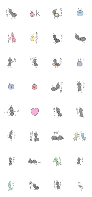 ゆるい蟻のスタンプ。ゆるくて使いやすい蟻。カラフルな蟻。ちい より発売
