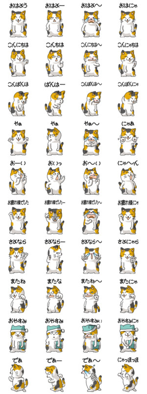 その日の気分で挨拶を変えましょう。 ※このスタンプはトークルームで大きく表示されるBIGスタンプです。たたら より発売