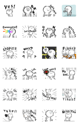 大人気!白ハゲキャラが全身の震えとともに色んな感情を溢れさせるスタンプ、英語版です。