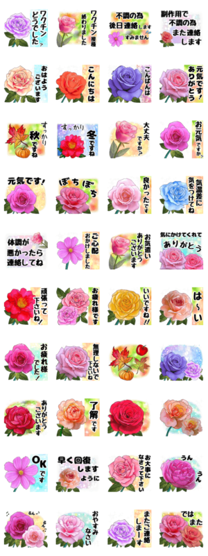 バラなどのお花とシンプルな会話とやさしい気遣いの敬語、挨拶。大人女子がずっと使える感謝の言葉。コロナや、風邪で体調不良でもすぐ簡単にお返事が返せます。ことぶき より発売