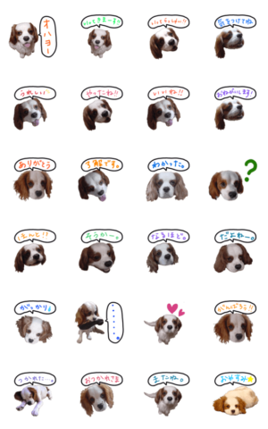 大好きなキャバリア・キング・チャールズ・スパニエルのペコのスタンプ。いつもかわいいペコちゃんと一緒!ikumaru より発売
