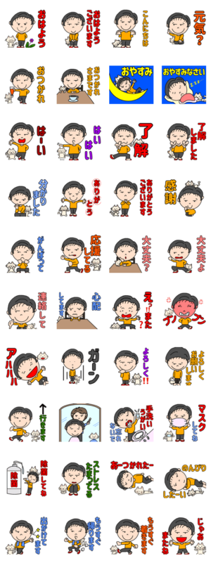 毎日使える便利な言葉です。ショートカットの女性の隣に居るネコも可愛いです。ゆずっ子 より発売