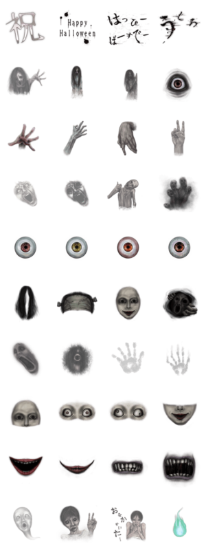 写真に貼れば心霊写真が作れる、ホラーなスタンプ。怖いのが好きな方へ送ったり、ハロウィン用としてもご利用いただけます。