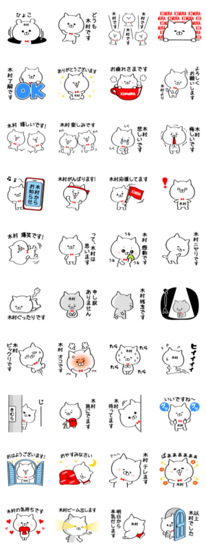 名字(苗字)木村(きむら)さんが使うネコの名前スタンプです。仕事仲間にも使えるように敬語・ですます調になっています。