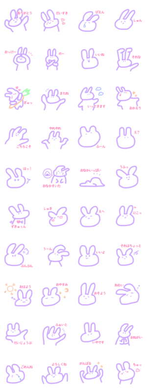 うさぎ。文字入り。結構使いやすい。朝から晩まで使えると思うよ。むらさきかわいい。SAME より発売