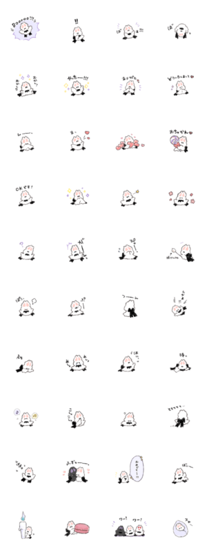 ふわふわ小さなウサギコウモリのスタンプ。まだ赤ちゃんだからうまく飛べないけどお菓子の棚には登れるよ。SHON より発売