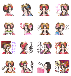美少女図鑑。花魁編のポップアップスタンプが登場!舞う花びらや花魁の妖艶な表情など、微かな動きを楽しめます。美しい日本の和を是非お楽しみください。mayurimu より発売