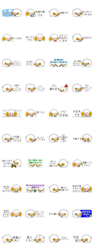 小さめで細長い羊さんのスタンプです。優しく励まされるメッセージもあります。