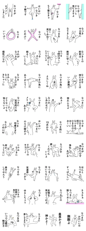 なつきちゃん、なつきくんが使えるスタンプです。シュールで面白いバージョンです。ナツキ、夏樹、菜月、夏希、夏木、夏喜、夏生、夏紀、夏輝、那月、奈月、奈都希など。