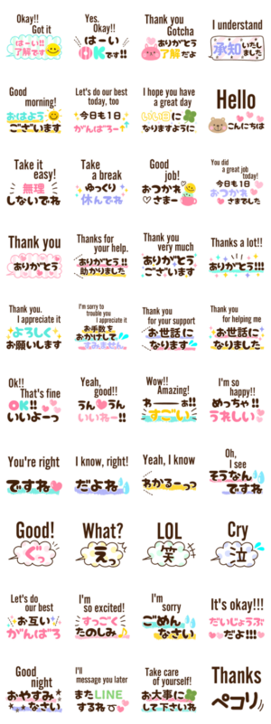 シンプルな日本語&英語併記のスタンプ♡使いやすい言葉を厳選しました♪chaco より発売