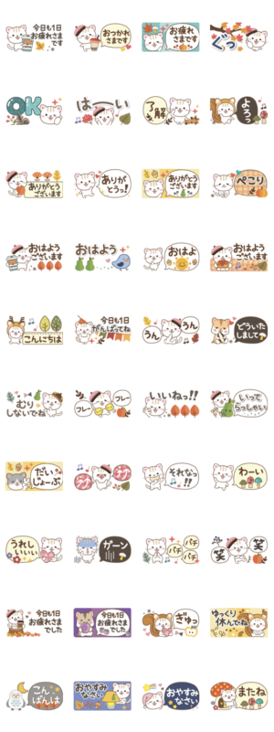 秋をエンジョイしているねこのスタンプです。かわいらしいスタンプをラインに飾って癒されましょう。