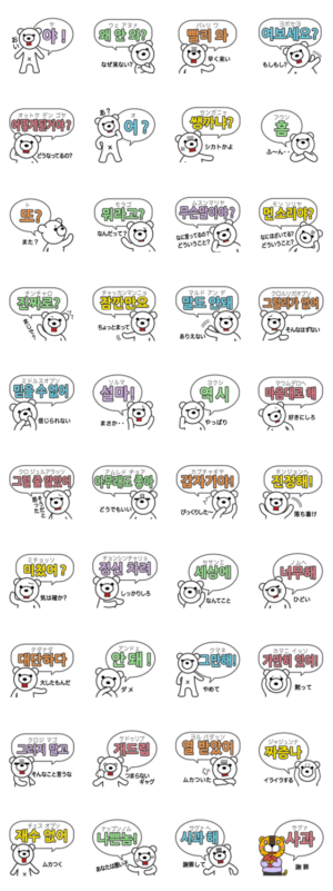 怒りの熊スタンプ。韓国語と日本語の表記アリ。RAKO より発売