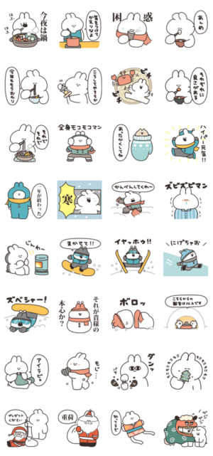 冬仕様のうさぎのスタンプです。ナポリ より発売