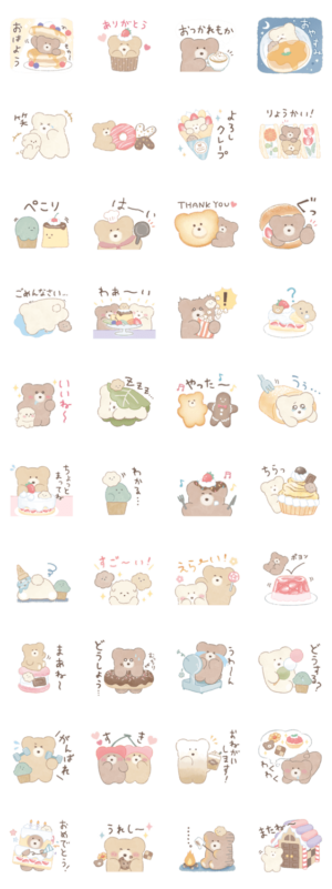 くまがスイーツのクッキー持ったりケーキに挟まれてるの可愛い。バリエーションがあっていい。
