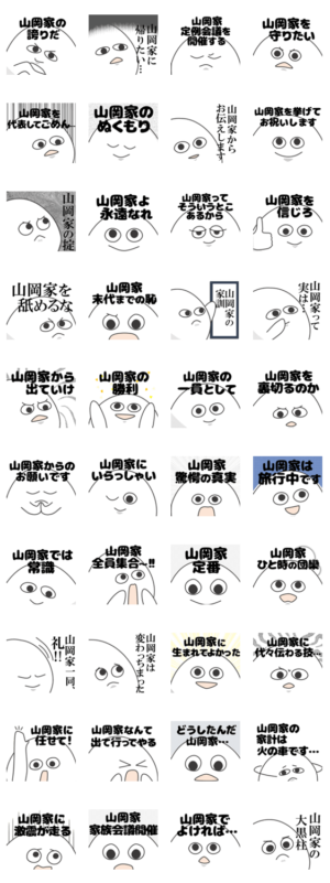 家族間の業務連絡ラインにも使える山岡家専用名前LINEスタンプです。プレゼントにもおすすめ。兄弟姉妹/夫婦/結婚/親戚/一家/おじいちゃん/おばあちゃん/お父さん/お母さんひとみ屋 より発売
