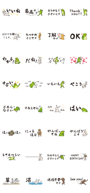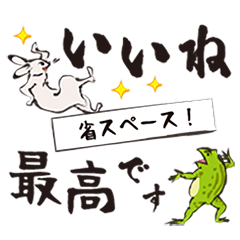 スペースを取らないミニサイズの鳥獣戯画スタンプです。ゆる可愛いかえるやうさぎが日常会話を盛り上げます。