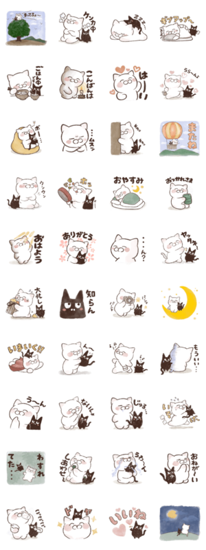 日常使いに便利な優しいタッチのスタンプ。白猫と黒猫。大和猫 より発売