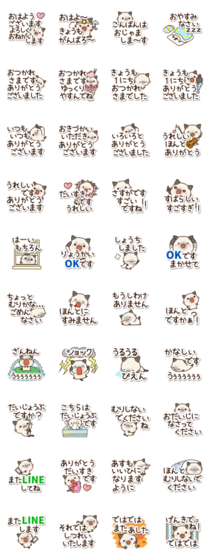 『ちびシャム』の、しゃむ猫スタンプの【長文】編です。よく使う言葉を、文字いっぱいに、一度で送れるようにした便利なネコスタンプです。ねこ好きな方にぜひ。【かたこ】かたこ より発売