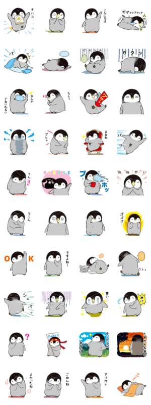 かわいい皇帝ペンギンの赤ちゃんが、おはようからおやすみまであなたをサポート!こんにちは、ありがとう、よかったね、ごめんね等々。ドヤ顔から泣き顔までペンペン!