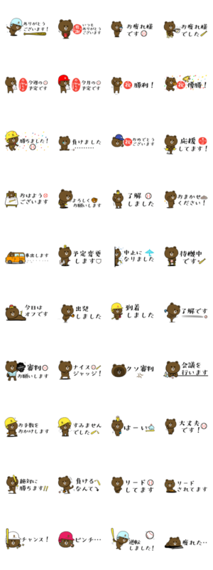 野球連絡専用 省スペース☆BROWN & FRIENDS スタンプ画像一覧