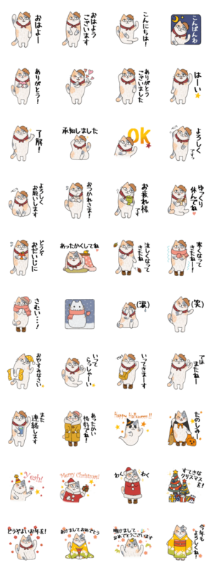 このネコちゃんっ自体がぬくぬくあったかそうで、秋冬のスタンプにぴったりだと思います。