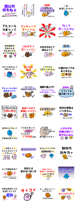 ゆるい動物スタンプ3です。酒ヤクザヤニカスツライ。煽り/アル中/二日酔い/文句/煙草/喫煙者バブルガム より発売