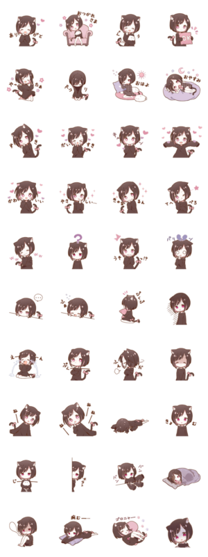 ちょっぴり地雷系なあざとかわいい黒猫の女の子♡かまってほしい時や、日常でも使いやすいスタンプとなっております♪しろなっぱ より発売