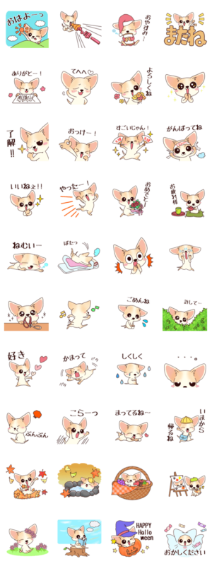 かわいいチワワ(クリーム)のスタンプを日常でよく使う言葉で集めました。上司やお客様など目上の方々にも使いやすいスタンプです。