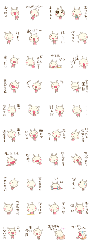 どちらかというと自信のないうさぎ。ゆるい編。「まったり」「それな」から「あとでやる」まで。ほどよく力のぬけたシンプルな言葉がいっぱい。家族、学校、お仕事でも。Mami / エストループ より発売