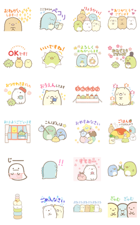すみっコぐらしは可愛くて集めたくなるキャラです。あいさつに使える言葉がいっぱいで、日常に使えます。