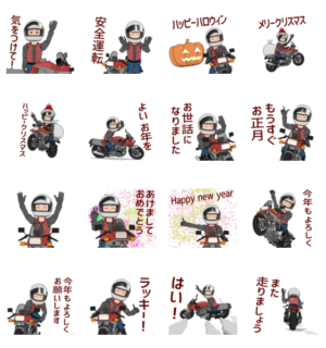 ライディングしていると幸せです。ご機嫌なバイク乗りのポップアップスタンプです。美しいバイクに乗る。モーターサイクル好きです。ハロウィン、クリスマス、お正月。bon より発売