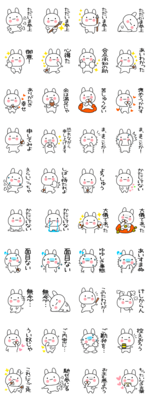 しろくてまるいうさぎ:ウサギの武士語:もののふご:ぶしごのスタンプです もるきゅた作もるきゅた より発売