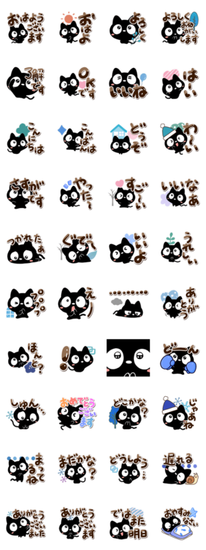 目が大きな黒猫、とってもかわいいです。この可愛さを活用しながら、寒い冬も楽しくラインができます。
