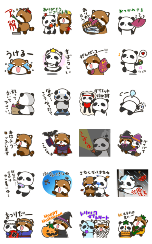 レッサーパンダとパンダのエフェクトスタンプです。 背景が可愛く楽しく動きます。秋をテーマにしたスタンプなので、ハロウィンにも是非!