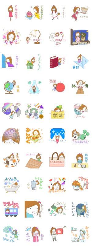 小学生・中学生・高校生の日常使いスタンプです! 時間割きいたり宿題きいたり友達と使っちゃおう!