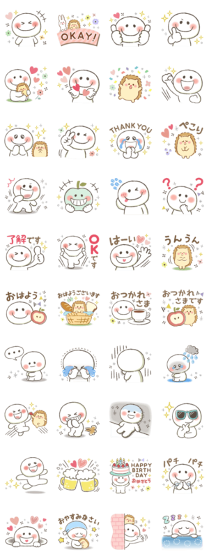 ふんわりやさしいスマイルをラインの定番ポーズに!文字入り&文字無しを混ぜ込んだ、誰でも毎日使いやすい北欧風な大人可愛いスタンプです。