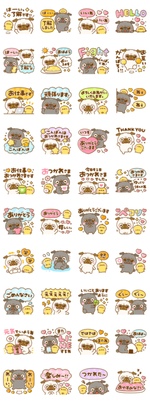 毎日使える♪かわいい犬♡パグちゃんのカラフルなスタンプです♪ぴよたぬき♡ より発売