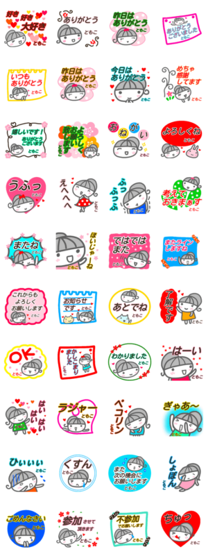 【ともこ】返信、お礼、あいさつスタンプ スタンプ画像一覧