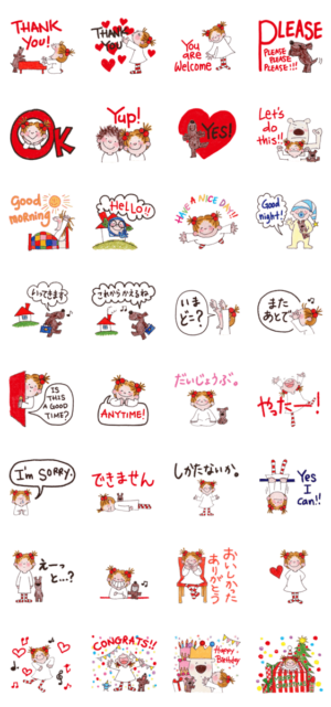 おさげのほっぺがふっくらメルヘン女の子♡この笑顔スタンプが明るくしてくれる